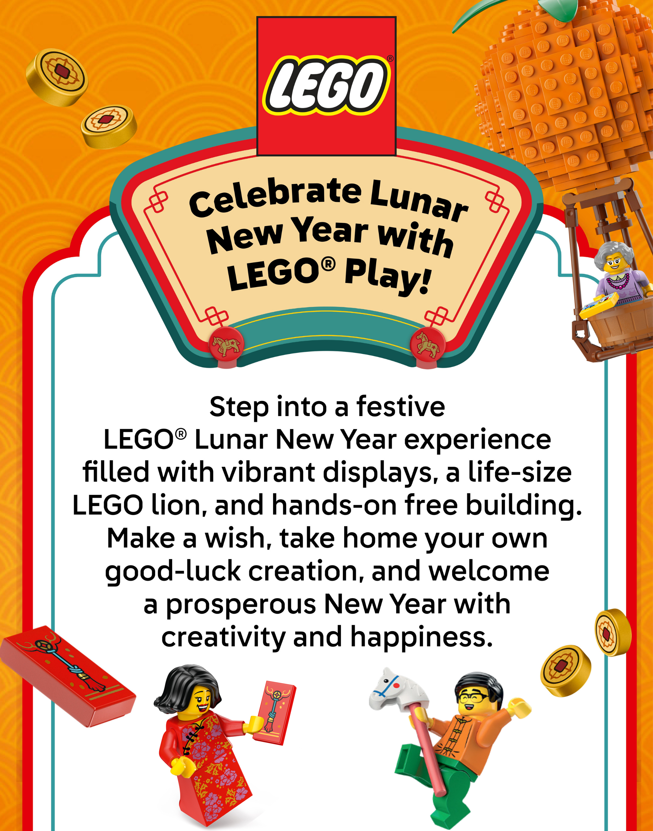 Unit 1295Experience a hands-on LEGO décor zone featuring festive builds and interactive displays. Take photos with the colorful Lunar New Year scenes and create lasting memories!